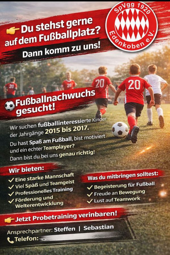 Derzeit haben wir keine aktive D-Jugend, dies soll sich ändern: Wir suchen für die kommende Saison 2026/2027 Spieler und Trainer/Betreuer für unsere D-Jugend. Wenn du Interesse hast, wende dich an Leonhard Gospodarczyk oder Steffen Schwarztrauber (+49 152-22686251) oder melde dich unter svevorstand@t-online.de.